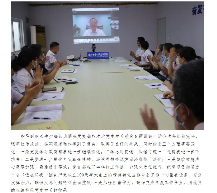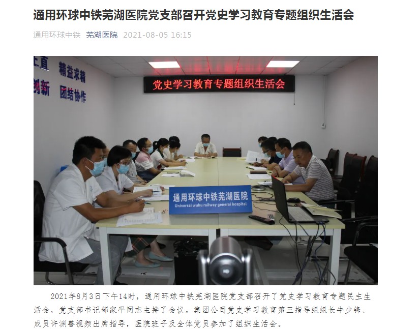 通用環(huán)球中鐵蕪湖醫(yī)院黨支部召開黨史學(xué)習(xí)教育專題組織生活會(huì) |