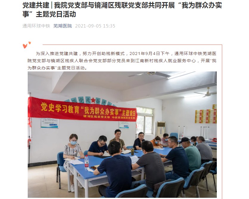 黨建共建│我院黨支部與鏡湖區(qū)殘聯(lián)黨支部共同開展“我為群眾辦實事”主題黨日活動 |