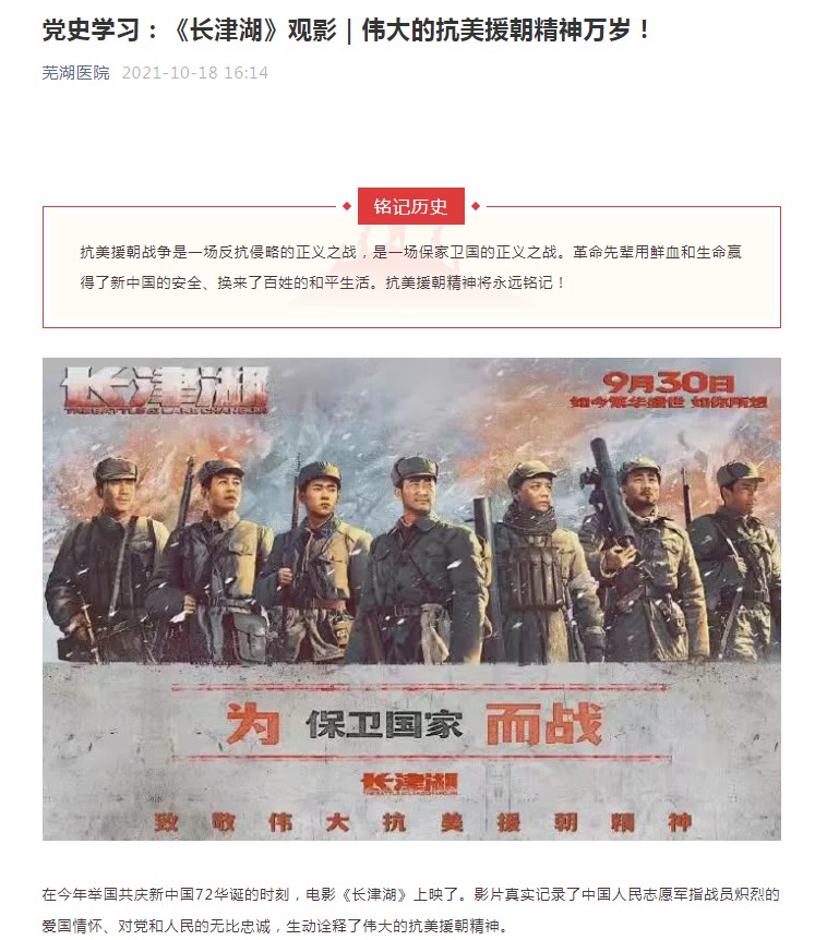 黨史學(xué)習(xí):《長(zhǎng)津湖》觀影|偉大的抗美援朝精神萬(wàn)歲! |